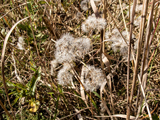 Field Thistle is a member of the aster family (family Asteraceae) which includes herbs, sometimes shrubs or vines, rarely trees, with simple or compound, alternate or opposite leaves. Flowers small, but organized into larger heads resembling a single, radially symmetrical flower cupped by a ring of green bracts. Flower-like heads: tiny, radially symmetrical central flowers form the disk; larger flowers around the edge, the rays, strap-shaped and resembling petals; however, all flowers in one had may be disk flowers or rays.